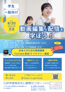 # 動画編集・YouTube配信を学ぼう!初心者でも安心の ITリテラシー講座【8/30開催】